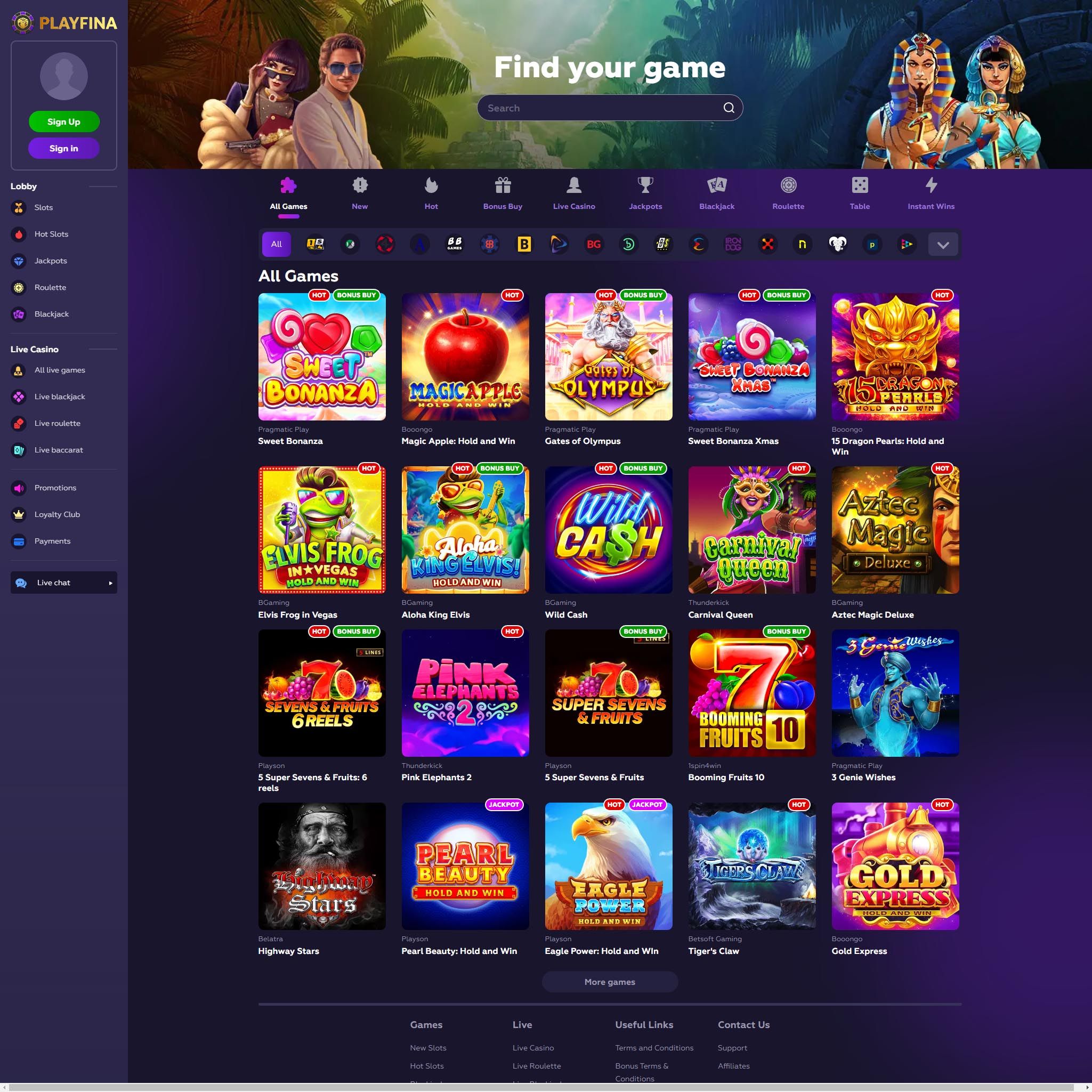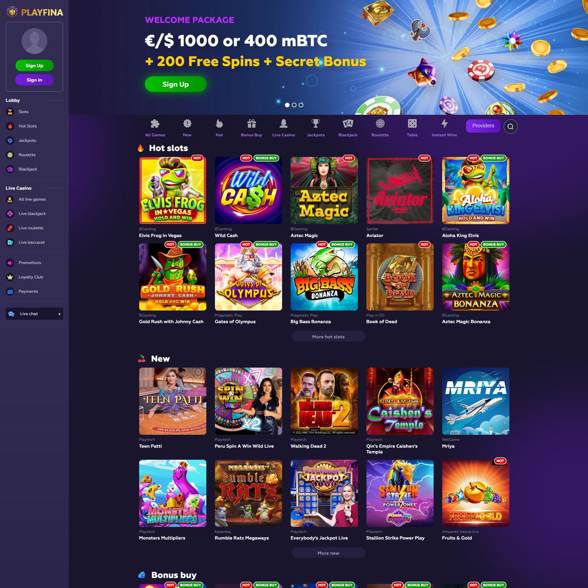 At Playfina Online Casino, you can choose from a diverse selection of games, including slots, table games, and live dealer games. Whether you prefer classic casino games or cutting-edge slots, Playfina has something for every player.